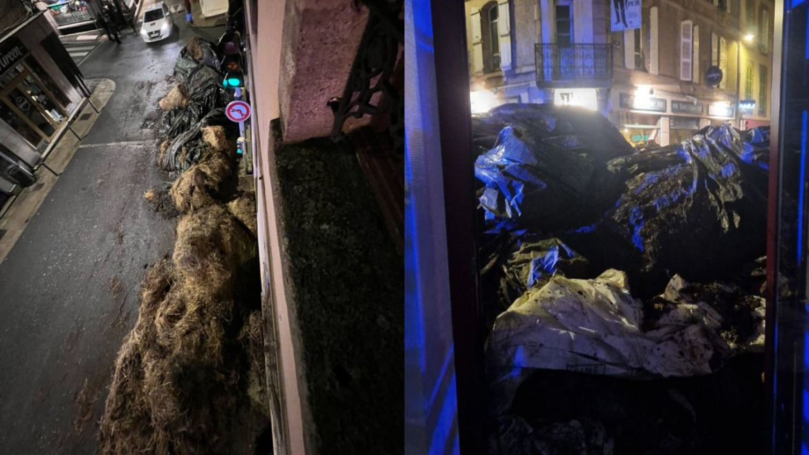 A polícia interveio quando os agricultores despejaram esterco, resultando em uma prisão.