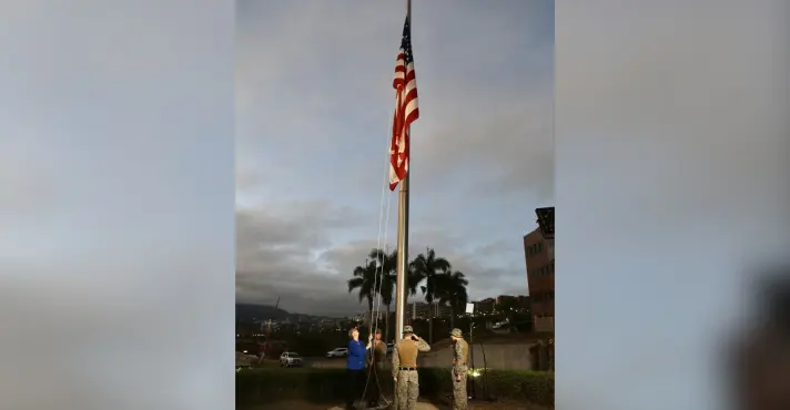 Laura Dogu, encarregada de Negócios dos EUA no país, compartilhou o momento do hasteamento da bandeira nas redes sociais.