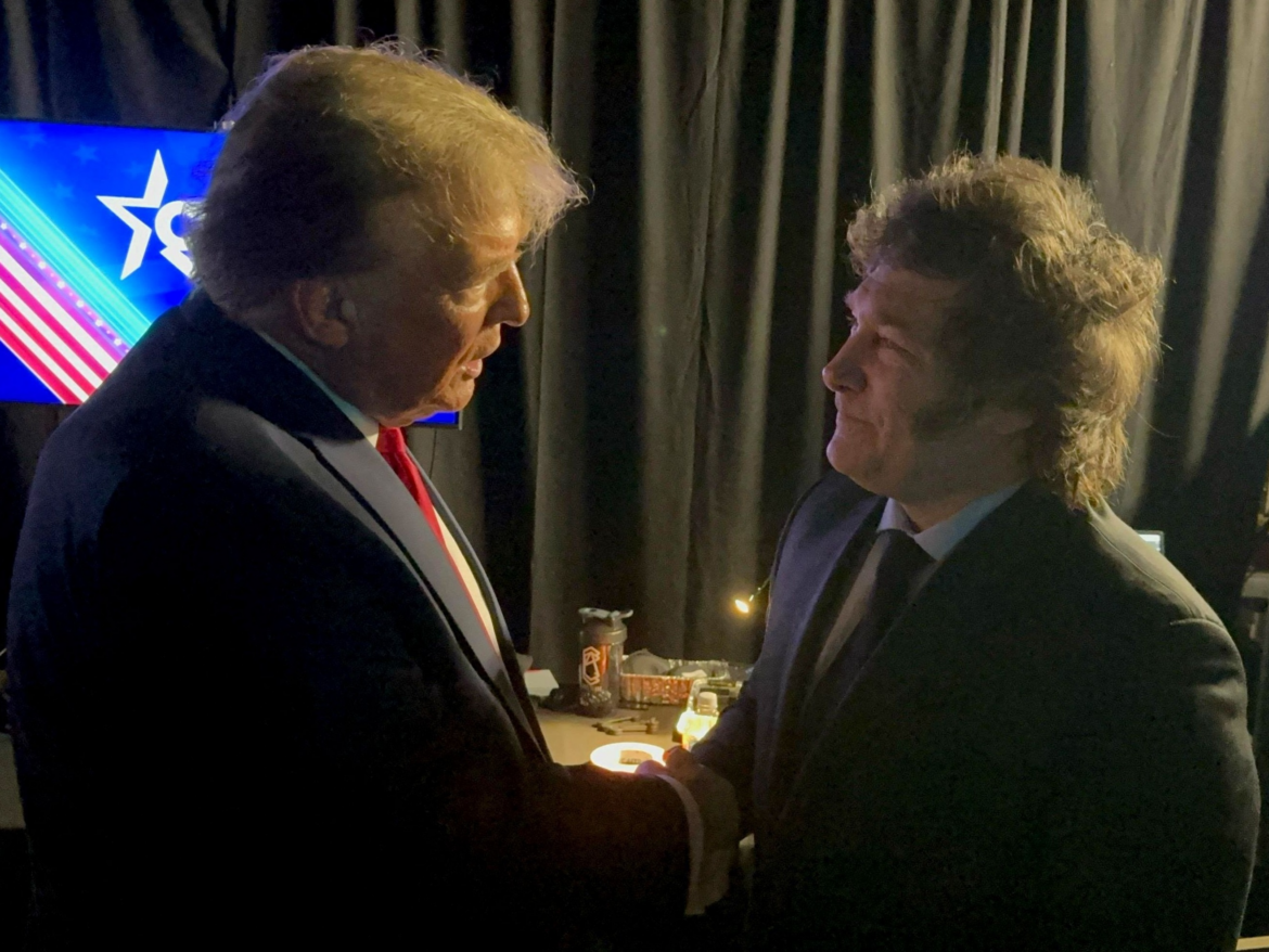 Milei e Trump demonstraram admiração mútua recentemente, inicialmente nas redes sociais e depois pessoalmente durante a Conferência de Ação Política Conservadora (CPAC), em fevereiro, nos EUA.