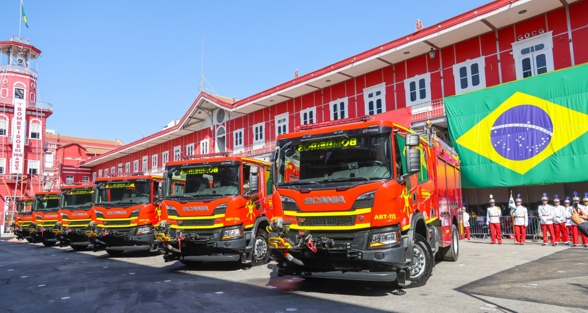 O Corpo de Bombeiros do Rio de Janeiro recebeu, nesta terça-feira (02/07), as primeiras unidades de um total de 40 novos caminhões de combate a incêndio do tipo Auto Bomba Tanque (ABT), adquiridos pelo Governo do Estado. Além dos caminhões, foram entregues três plataformas mecânicas, sendo uma nova e duas recentemente reformadas. A cerimônia ocorreu durante as celebrações dos 168 anos da corporação.