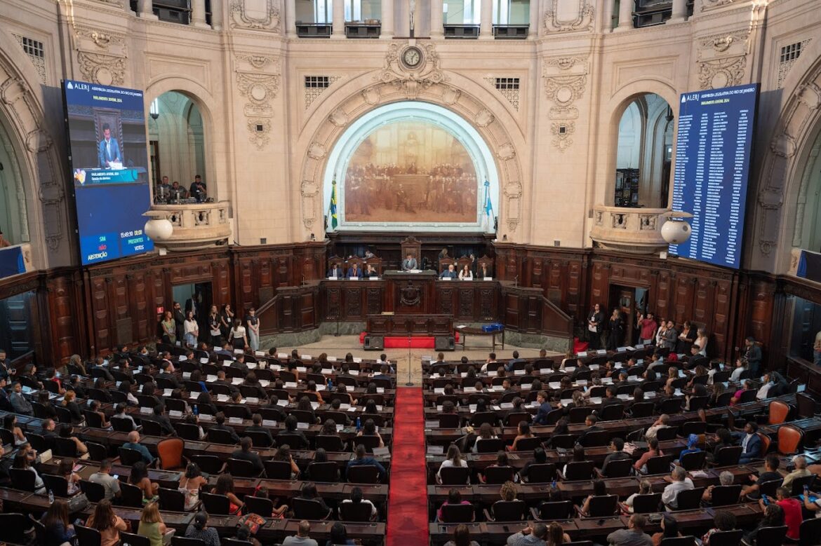 Os estudantes da rede estadual de ensino, eleitos para participarem da 15° edição do Parlamento Juvenil (PJ), tomaram posse de seus mandatos durante sessão solene de abertura do projeto, realizada nesta segunda-feira (25/11), no plenário do palácio Tiradentes, sede histórica da Assembleia Legislativa do Estado do Rio de Janeiro (Alerj). Durante a solenidade, os 95 estudantes receberam o diploma, assinaram o livro de posse e elegeram Thayllane Nascimento, da cidade de Rio Bonito, como presidente da edição, a terceira menina a liderar o Parlamento Juvenil nesses 21 anos de projeto. Os integrantes da Mesa Diretora também foram eleitos, na qual as meninas também são a maioria.