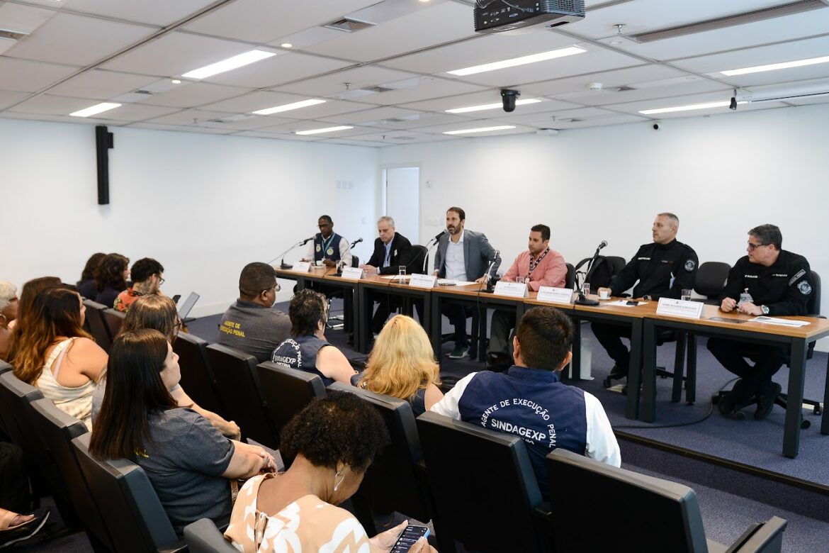 “Segunda-feira, estarei conversando com o secretário Nicola Miccione (da Casa Civil)) sobre a pauta da progressão de carreira dos agentes de execução penal, para que seja aprovada e segui-la conforme orientação. O que travava o avanço da Casa Civil sobre o tema era o Regime de Recuperação Fiscal”, disse o subsecretário de gestão de pessoas da Secretaria da Casa Civil, Alexandre Mendes Meyohas.
